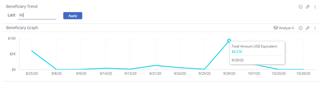 This graph displays the trend of payment activity for a given beneficiary over a selected time horizon.